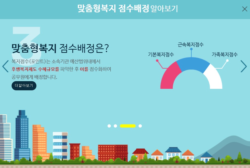 많은 분들이 공무원을 선망하고 준비하시는 이유가 체계적이고 정확한 복지 시스템과 안정적인 직업이라는 이유가 큰데요. 안정된 노후와 워라벨이 있는 삶을 지향하는 요즘 사회 분위기 속에서 이런 요소는 더욱 주목받고 있죠. 특히 공무원의 복지 중 대표적인 혜택이라고 할 수 있는 공무원포인트에 대해서 알아보겠습니다.