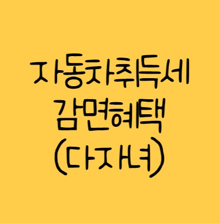 2019년 1월 1일부터 2024년 12월 31일까지 다자녀 양육자가 양육을 목적으로 차량을 취득하여 등록한 경우 취득세가 200만원 이하일 경우에는 취득세가 전액감면됩니다. 200만원을 초과하는 경우 85%만 감면됩니다