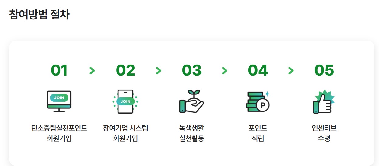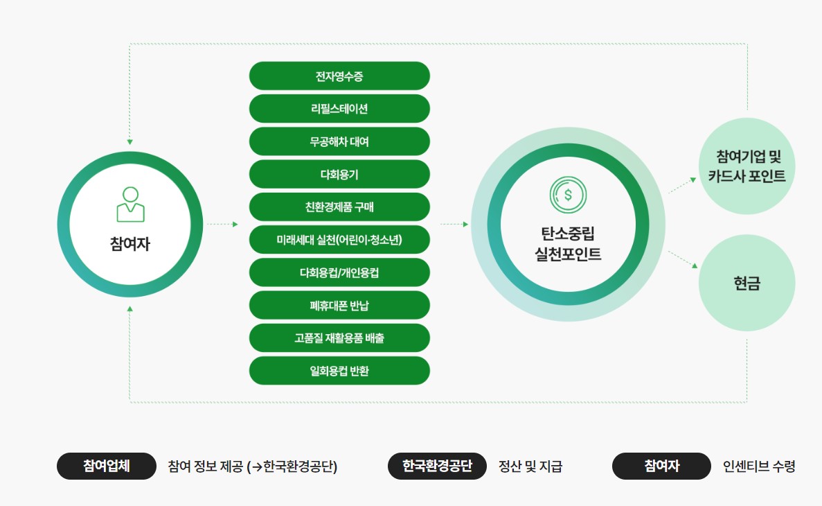 우선 탄소중립 실천 포인트 홈페이지에서 회원가입을 하고 계좌 또는 카드 포인트 중에 인센티브를 입금 받으실 방법을 선택합니다. 그리고 탄소중립 실천 활동에 참여하시면 인센티브가 지급됩니다. 전자영수증의 경우 참여기업의 앱에서 직접 전자영수증 발급하기를 신청해 주셔야 합니다.