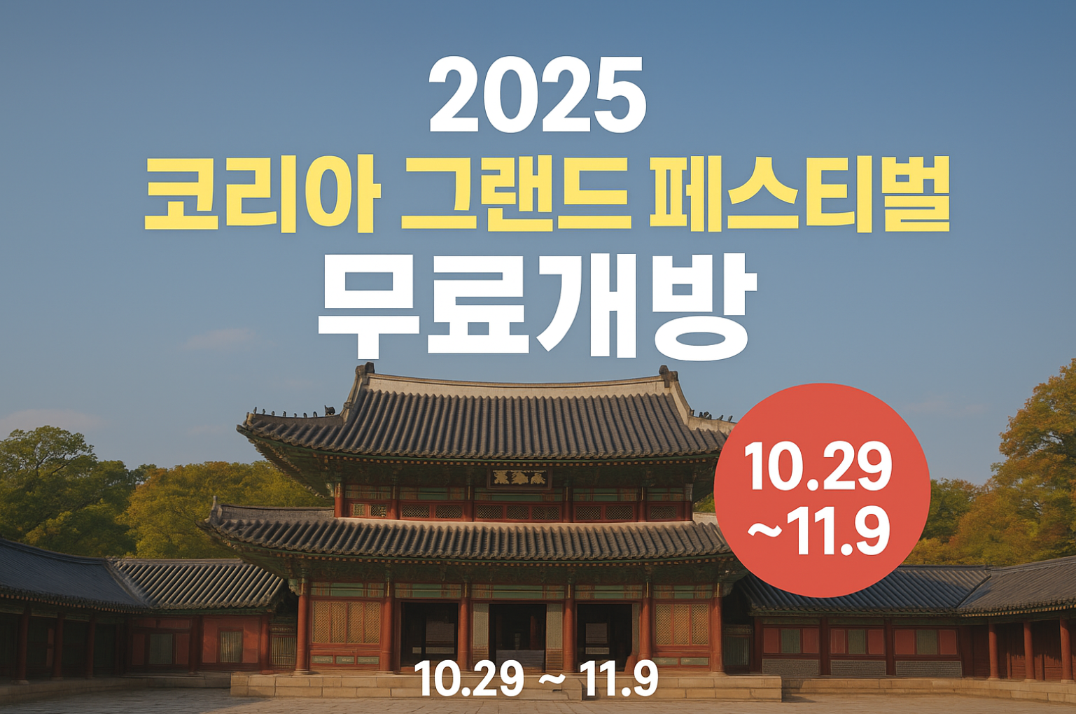 2025 코리아 그랜드 페스티벌은 소비 진작뿐 아니라 대한민국 문화유산을 무료로 즐길 수 있는 최적의 기간입니다.