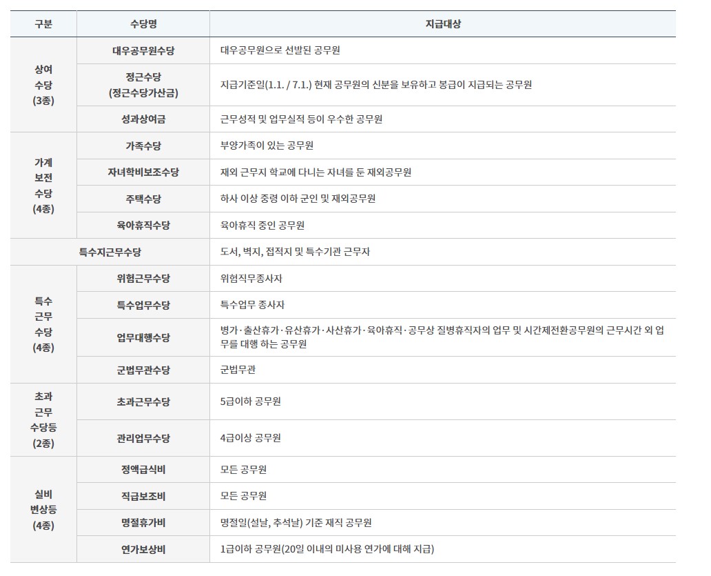 경찰공무원은 봉급표에 나온 기본급 뿐만 아니라 수당도 포함됩니다. 다양한 수당이 있지만 주로 받는 수당은 특수지근무수당, 특수근무수당, 초과근무수당 등이 있습니다.