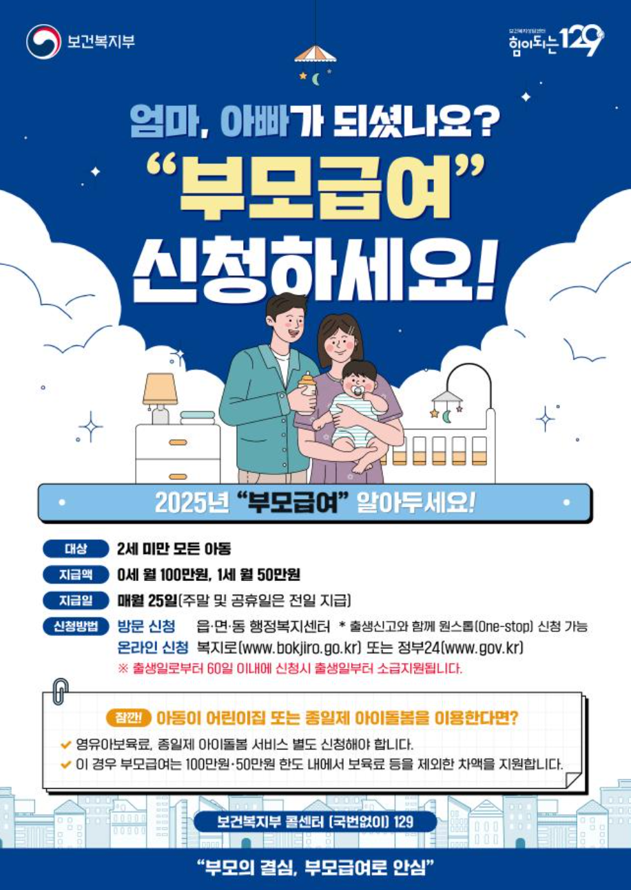 2025년 부모급여는 양육 초기 부모님들의 경제적 부담을 크게 줄여주는 제도입니다.